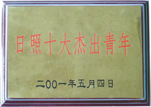 · 2001年5月4日,授予丁杰董事長(zhǎng)“日照十大杰出青年”榮譽(yù)稱號(hào)