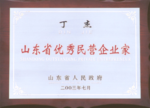 · 2003年7月,授予丁杰董事長(zhǎng)“山東省優(yōu)秀民營(yíng)企業(yè)家”榮譽(yù)稱號(hào)