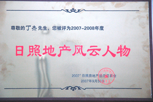 · 2007年9月30日,丁杰董事長(zhǎng)榮獲“日照地產(chǎn)風(fēng)云人物”榮譽(yù)稱號(hào)
