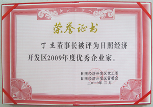 · 2010年2月,丁杰董事長(zhǎng)榮獲“日照經(jīng)濟(jì)開發(fā)區(qū)2009年度優(yōu)秀企業(yè)家”榮譽(yù)稱號(hào)