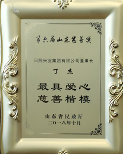 ·2018年10月,丁杰董事長(zhǎng)被授予山東省“最具愛心慈善楷模”