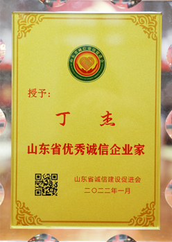 ·2022年1月,丁杰董事長(zhǎng)獲評(píng)“山東省優(yōu)秀誠(chéng)信企業(yè)家”