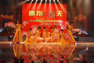 張開堅定的臂膀 擁抱希望的春天 “擁抱春天”興業(yè)集團(tuán)2009年春節(jié)聯(lián)歡晚會隆重舉行 鼠去牛來辭舊歲,龍飛鳳舞慶新春。1月17日,“擁抱春天”興業(yè)集團(tuán)2009年春節(jié)聯(lián)歡晚會在日照廣播電視演播大廳隆重舉行。丁杰、王建國、韓金軍、趙文強(qiáng)、劉永漢、申作華、李春賢等領(lǐng)導(dǎo)和集團(tuán)工作標(biāo)兵、先進(jìn)工作者,及各分公司的職工代表500多人歡聚一堂,一同興致勃勃地觀看了演出。 整臺晚會在歡快、精彩、喜慶的歌伴舞《歡天喜地》中拉開了帷幕。旋律優(yōu)美的歌舞器樂表演《日照,我眷戀的故鄉(xiāng)》,深情的表達(dá)了興業(yè)人對家鄉(xiāng)的熱愛;公司王鵬的獨(dú)唱《今天》唱出現(xiàn)代人對生活的執(zhí)著追求;興業(yè)房產(chǎn)的姑娘們自編自演的舞蹈《趕!罚┟钗┬さ谋憩F(xiàn)出了海邊人的趕海樂趣。小品《牛老板買房》來源于生活、取材于銷售工作,通過小品中的牛老板對銷售人員的現(xiàn)場考驗(yàn),進(jìn)而義無反顧的買興業(yè)房子這一主題,再現(xiàn)了興業(yè)房產(chǎn)旨在用服務(wù)贏得客戶,用真誠打動業(yè)主,堅持走品牌戰(zhàn)略的路線,小品演員逼真到位的表演逗的臺下的觀眾捧腹大笑;興業(yè)房產(chǎn)副總許愛華和興業(yè)世紀(jì)嘉園社區(qū)阿姨們帶來的太極拳和劍術(shù)表演,剛?cè)岵?jì),相得益彰,展示了人們對中華武術(shù)的傳承與喜愛;激昂高亢的男聲獨(dú)唱《愛不愛我》唱出了年輕人的激情,唱出了年輕人的執(zhí)著;小品《以愛的名義》講述了一名興業(yè)員工和他的妻子在汶川大地震發(fā)生后,無私捐款的感人故事,展示了興業(yè)員工崇高的精神境界;情到深處,臺下的觀眾無不為之潸然淚下。詩歌朗誦《讓抗震精神永遠(yuǎn)激勵我們向前》將整臺晚會推向了高潮,通篇道出了興業(yè)人在汶川發(fā)生震災(zāi)后,積極捐款、捐物、獻(xiàn)血、生產(chǎn)救災(zāi)板房、赴川援建、幫助災(zāi)區(qū)同胞重建家園的感人場景,表現(xiàn)了興業(yè)人在國家災(zāi)難面前一馬當(dāng)先、甘于奉獻(xiàn)的高度社會責(zé)任感。京韻大鼓《重整河山待后生》表達(dá)了對災(zāi)區(qū)的美好祝愿;歌曲《中國龍》表達(dá)了興業(yè)人的愛國情懷;來自興業(yè)汽配的裴玉用近乎專業(yè)的唱功為大家演唱的歌曲《天路》和青島永杰公司表演的《新疆歌曲串燒》給我們帶來了別開生面的異域風(fēng)情;伴著夢幻般音樂的魔術(shù)《畫中人》,其換衣玄機(jī)著實(shí)讓大家猜摸了一番;歌舞表演《走進(jìn)新時代》歌頌了中國改革開放三十年的蓬勃發(fā)展,表達(dá)了興業(yè)人對祖國的無限熱愛;本場晚會的主題歌,原創(chuàng)歌曲《擁抱春天》充分展示了興業(yè)人團(tuán)結(jié)協(xié)作、奮勇拼搏、共度寒冬、擁抱春天的堅定信心和美好祝愿,將晚會再次推向高潮。晚會最后在《明天會更好》的優(yōu)美旋律和對新年美好的祝福聲中落下了帷幕。 本場晚會全部是由興業(yè)集團(tuán)員工自編、自演、自導(dǎo),節(jié)目內(nèi)容健康向上,突出原創(chuàng),充分體現(xiàn)了興業(yè)集團(tuán)優(yōu)秀的企業(yè)文化和興業(yè)員工良好的精神風(fēng)貌。 整臺晚會歷時近兩個小時,節(jié)目精彩紛呈,觀眾喜聞樂見。 據(jù)了解,“擁抱春天”興業(yè)集團(tuán)2009年春節(jié)聯(lián)歡晚會將于春節(jié)期間在日照電視臺各頻道播出,將為全市人民奉獻(xiàn)一道精彩的文藝大餐。 |