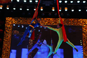 整場(chǎng)晚會(huì)以興業(yè)集團(tuán)成立10周年走過(guò)的光輝歲月為主線,在興發(fā)公司選送的歌伴舞《吉祥頌》中拉開(kāi)了帷幕,伴隨著激越的鼓點(diǎn)、歡快的舞蹈、喜悅的歌聲,霎時(shí),千米演播大廳成為了歡樂(lè)的海洋。興業(yè)房產(chǎn)公司選送的歌舞《紅旗飄飄》、《愚公移山》,唱出了興業(yè)人對(duì)偉大祖國(guó)的熱愛(ài)和百折不撓的創(chuàng)業(yè)精神;興業(yè)汽配公司選送的《前門情思大碗茶》京味十足,集團(tuán)機(jī)關(guān)選送的原生態(tài)陜北民歌《山丹丹花開(kāi)紅艷艷》和青春奔放的流行歌曲《改變自己》,展現(xiàn)了興業(yè)人多才多藝的時(shí)代風(fēng)采;天泰鋼構(gòu)公司田雯雯一曲《美麗心情》抒發(fā)了興業(yè)人對(duì)美好生活的熱愛(ài)和追求;房產(chǎn)公司姑娘們表演的富有濃郁民族特色的新疆舞《西域風(fēng)情》,勾起觀眾對(duì)邊疆風(fēng)情的片片遐想。集團(tuán)機(jī)關(guān)創(chuàng)作的配樂(lè)詩(shī)朗誦《興業(yè)十年頌》和音樂(lè)群口快板《說(shuō)唱興業(yè)房產(chǎn)》,讓全場(chǎng)觀眾打開(kāi)記憶之門,重溫了興業(yè)集團(tuán)10年的發(fā)展歷程,更是喚醒了興業(yè)人強(qiáng)烈的歷史使命感和自豪感,迸發(fā)出一股強(qiáng)大的自我升華的豪邁激情。青島永杰的姑娘們帶來(lái)的《激情水鼓》,奏響迎春盛典,震耳欲聾的鼓聲配合激昂的音樂(lè),水花飛濺,光芒四射,引爆全場(chǎng)激情。友誼商店的姑娘們表演的運(yùn)動(dòng)時(shí)裝秀和社區(qū)老年人表演的太極功夫扇《夕陽(yáng)美》,活力十足的青春魅力與剛?cè)岵?jì)的白發(fā)矍鑠,演繹出了一幅興業(yè)大家庭的和諧美景。公司選送的小品《風(fēng)波》和興發(fā)公司選送的山東快書(shū)《大老郭趕春晚》,情趣交融,令人捧腹,反映出了當(dāng)代建筑工人的情感世界和興業(yè)人對(duì)企業(yè)的無(wú)限熱愛(ài)之情。雜技《夢(mèng)幻藍(lán)綢》驚險(xiǎn)刺激,動(dòng)人心魄,引起場(chǎng)下觀眾陣陣驚呼。當(dāng)全場(chǎng)觀眾期待已久的北京《OOB美少女組合驚艷亮相時(shí),場(chǎng)下掌聲雷動(dòng),歡呼一片,動(dòng)感十足的青春美少女用她們的成名作《地球媽媽》和一首《心想事成》,甜歌勁舞,征服了全場(chǎng)觀眾,再掀晚會(huì)新高潮!吧揭粯拥臍馄,海一樣的魂,春天里走來(lái)了興業(yè)人”,伴隨著晚會(huì)主題歌曲《興業(yè)春天》的響起,《興業(yè)春天》興業(yè)集團(tuán)2010年春節(jié)聯(lián)歡晚會(huì)華彩落幕。